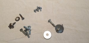 med två skruvar i fram och bakkant.